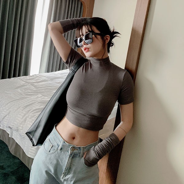 LULUS【A01210008】K自訂款高領短袖上衣+袖套30218
