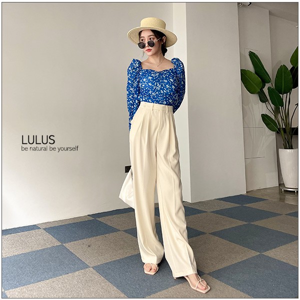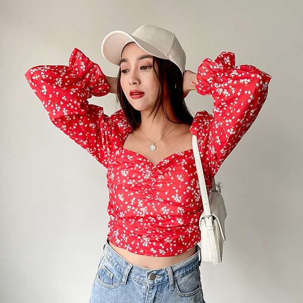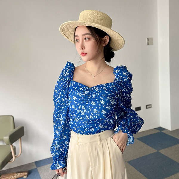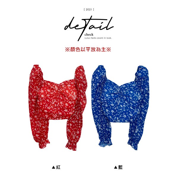 LULUS【A01210477】Y碎花抓皺公主袖胸墊上衣2色0715