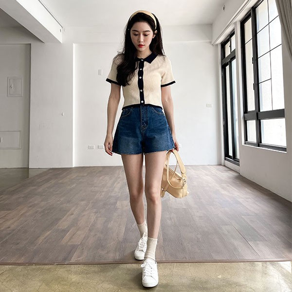 LULUS【A01210575】Y配色滾邊排釦針織上衣2色0722