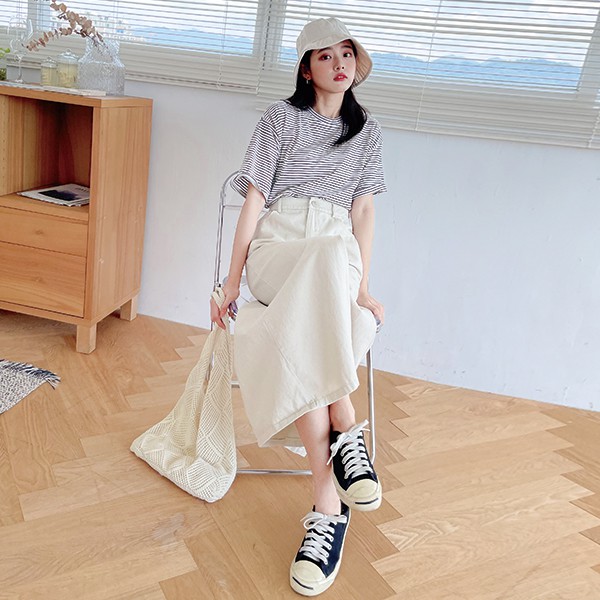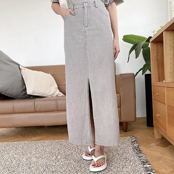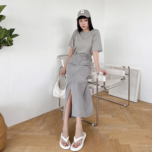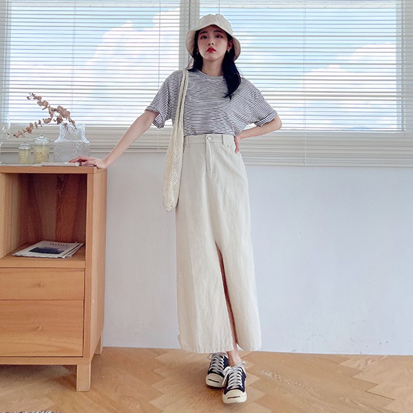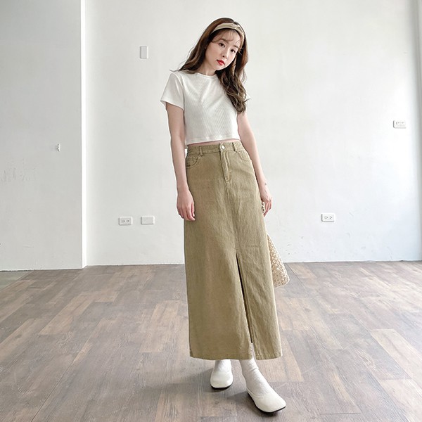 LULUS【A05210067】E開叉後鬆緊長裙3色0722