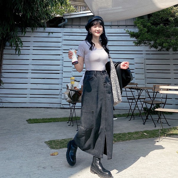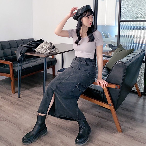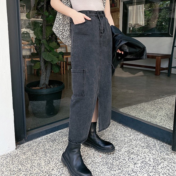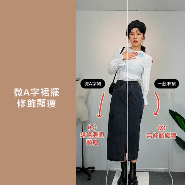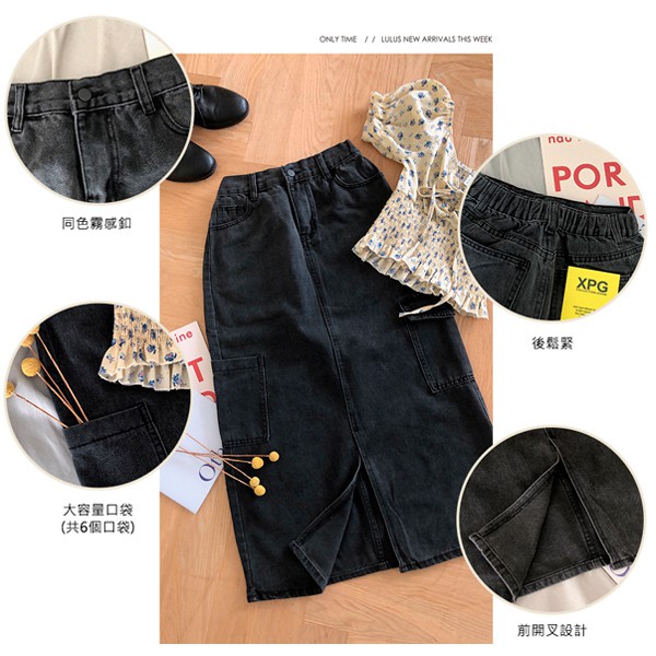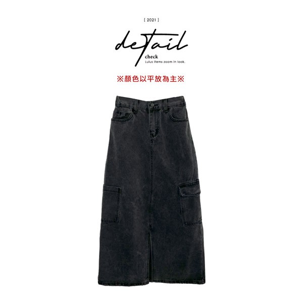LULUS【A05210011】Y側口袋開叉長裙S-L黑0225