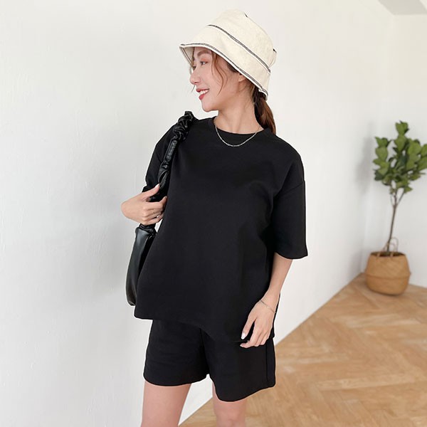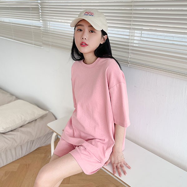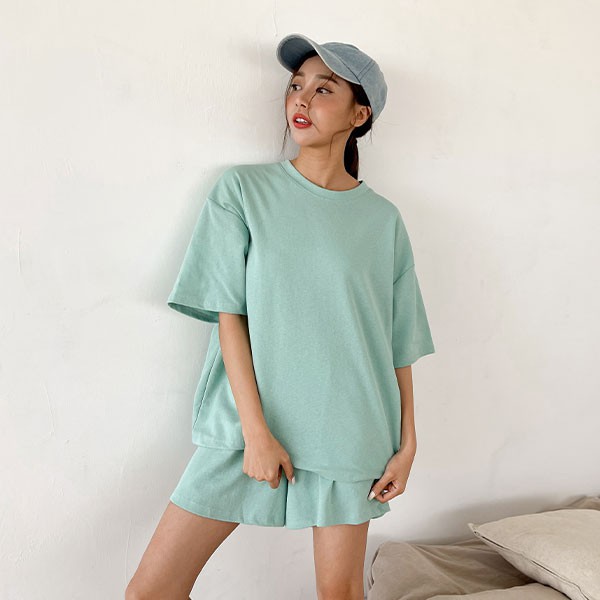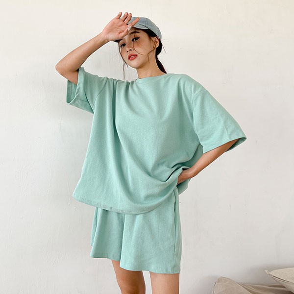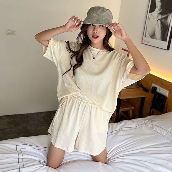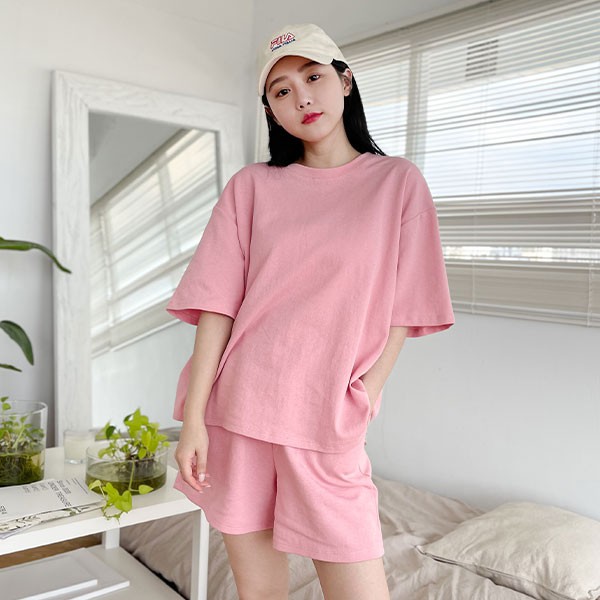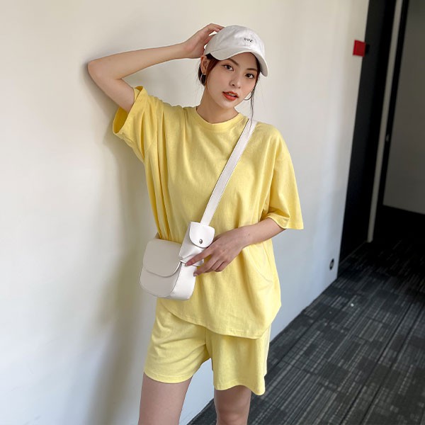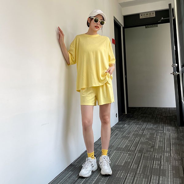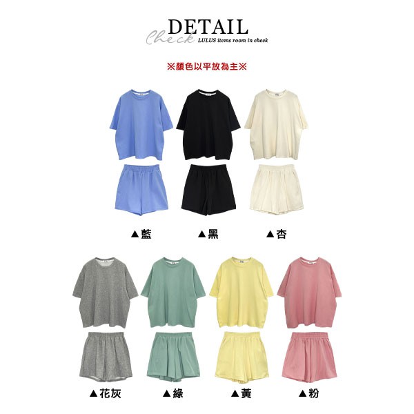 LULUS【A01210243】Y兩件式套裝-寬鬆圓領上衣+鬆緊短褲7色0520