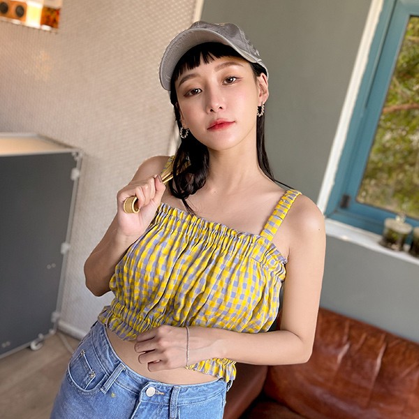 LULUS【A01210265】Y配色格紋縮腰上衣4色0513