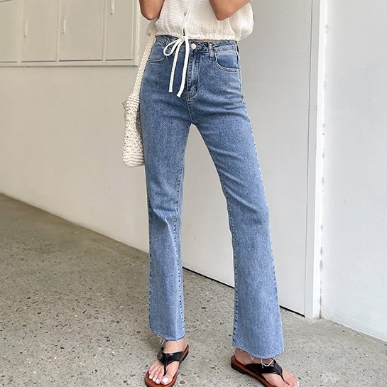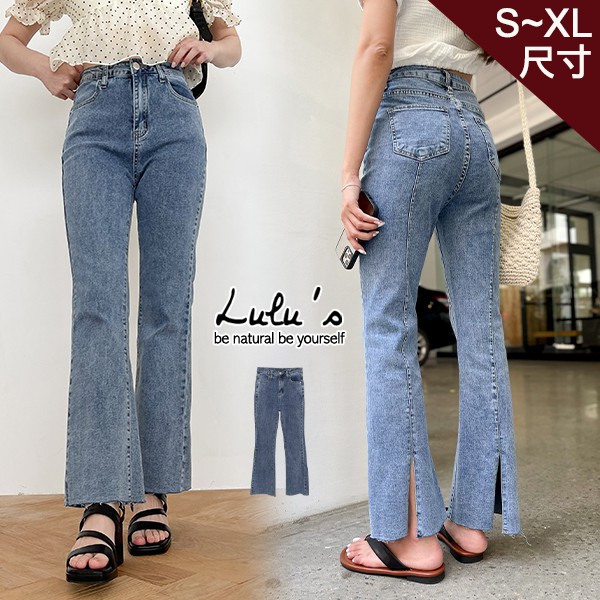 LULUS【A04210123】K後車線開叉牛仔長褲S-XL藍0527