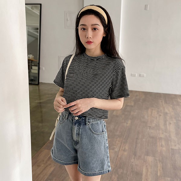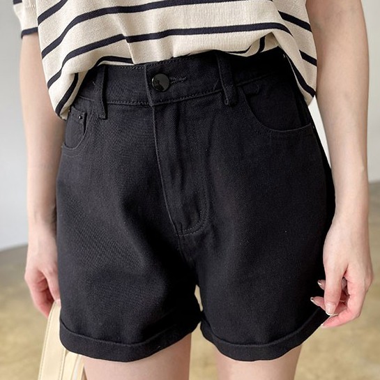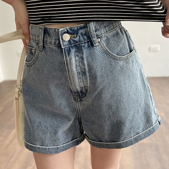 LULUS/反摺褲管後鬆緊牛仔短褲S-XL3色【A04210177】A字褲/顯瘦遮肉0701