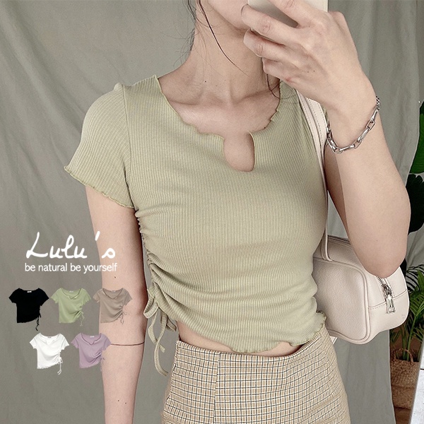 LULUS【A01210095】K自訂款拷克邊側抽繩上衣5色0401合身/小V領