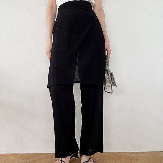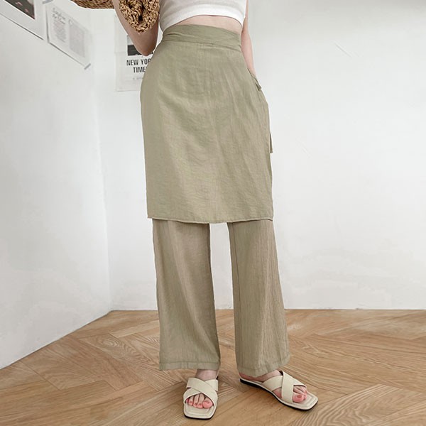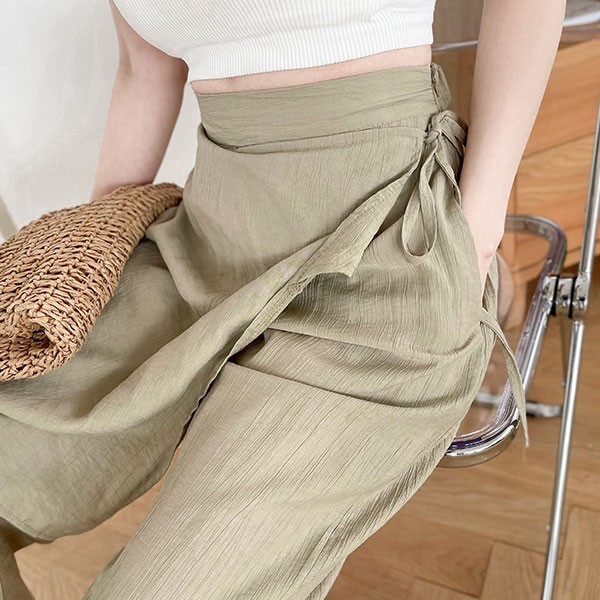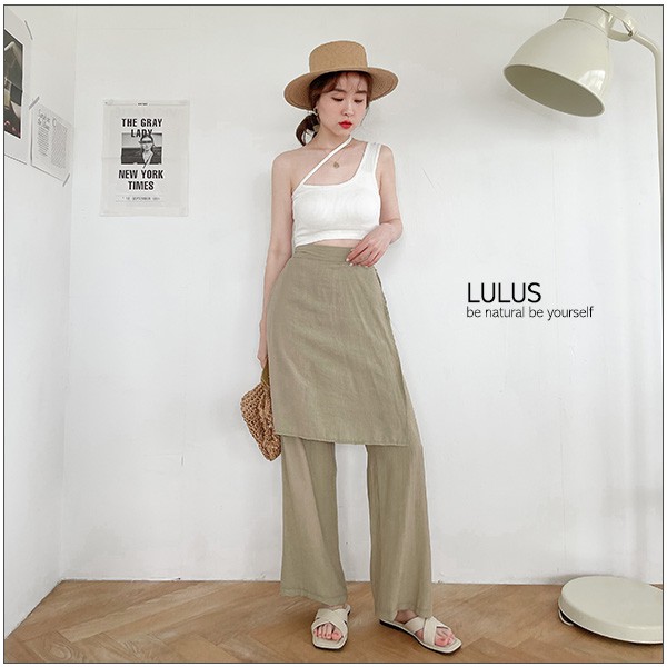 LULUS【A04210186】Y假兩件棉麻綁帶寬褲S-M2色0729