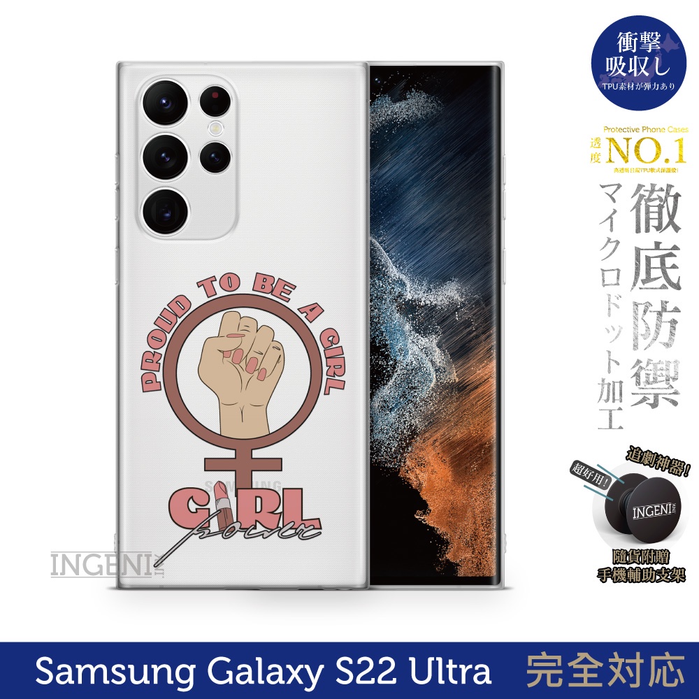 【INGENI】保護殼 TPU全軟式 設計師彩繪手機殼-Girl自豪 適用 三星 Galaxy S22 Ultra 5G