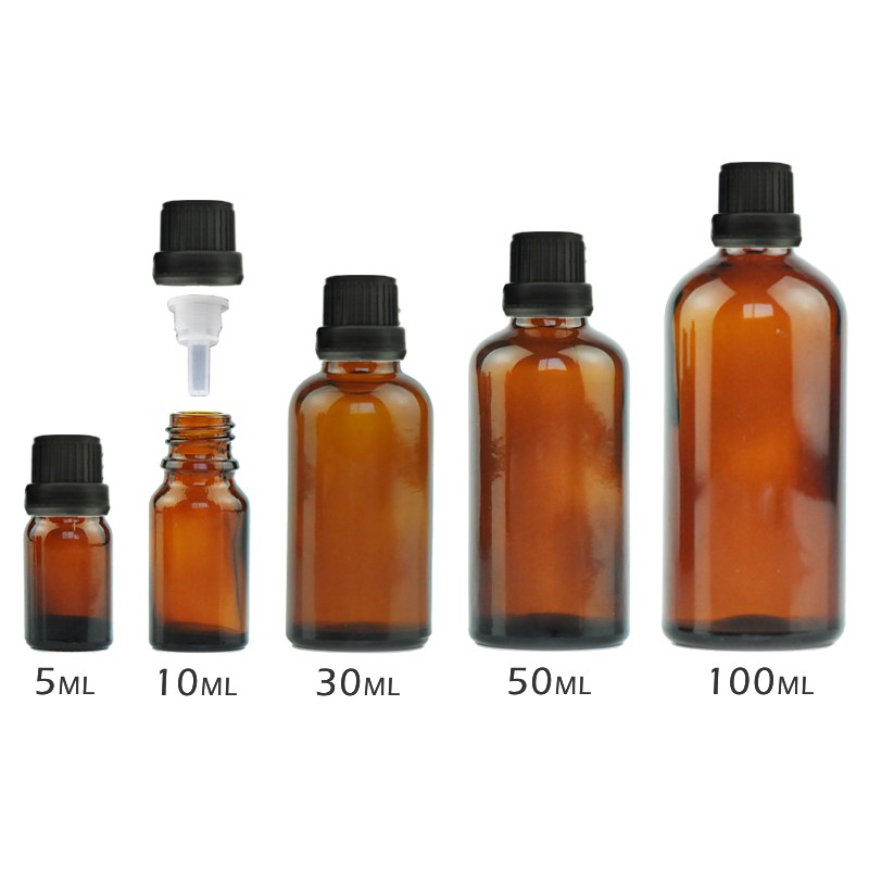 茶色玻璃精油空瓶(含蓋附內滴管)5-100ml。花草堂