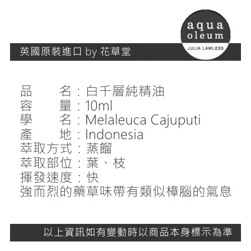 AO 白千層純精油 10ml。Cajuput。Aqua Oleum 英國原裝