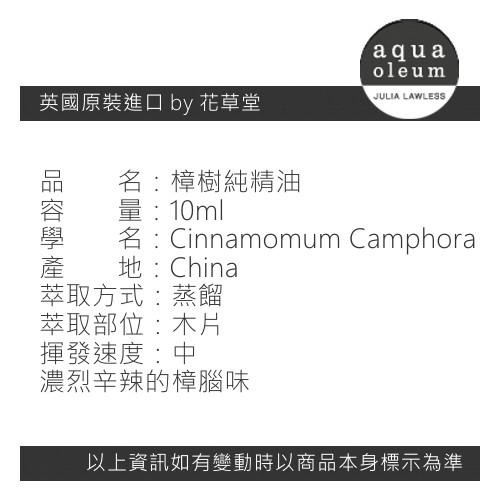 AO 樟樹純精油 10ml。Camphor。Aqua Oleum 英國原裝