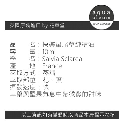 AO 快樂鼠尾草純精油 10ml。Clary Sage。Aqua Oleum 英國原裝