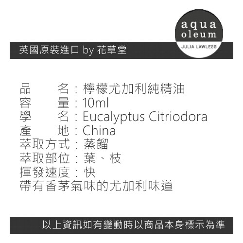 AO 檸檬尤加利純精油 10ml。Eucalyptus Cit。Aqua Oleum 英國原裝