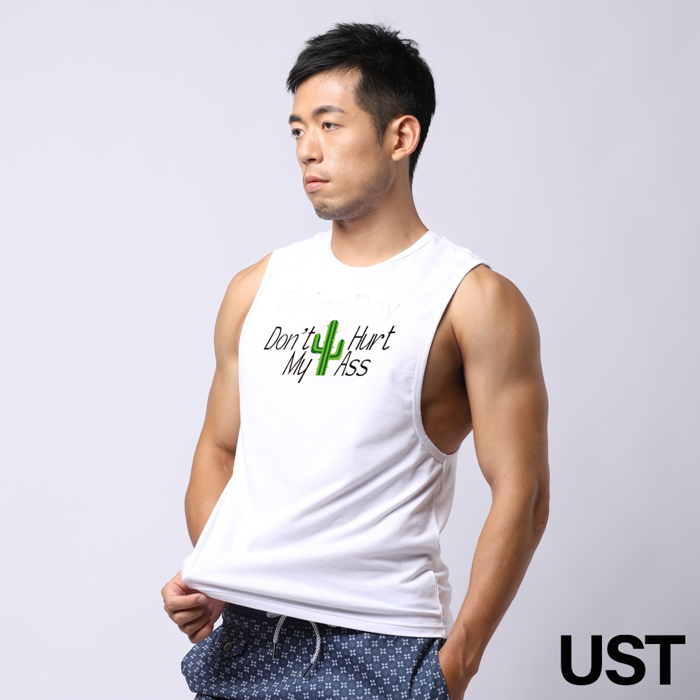 UST 不要傷害我的屁股 雙側邊大開口健身運動男背心(白色)2013101000490