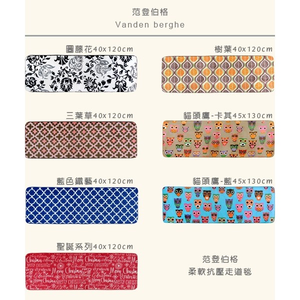 【范登伯格】 真柔軟舒適止滑踏墊-藍色鐵藝 40x120cm