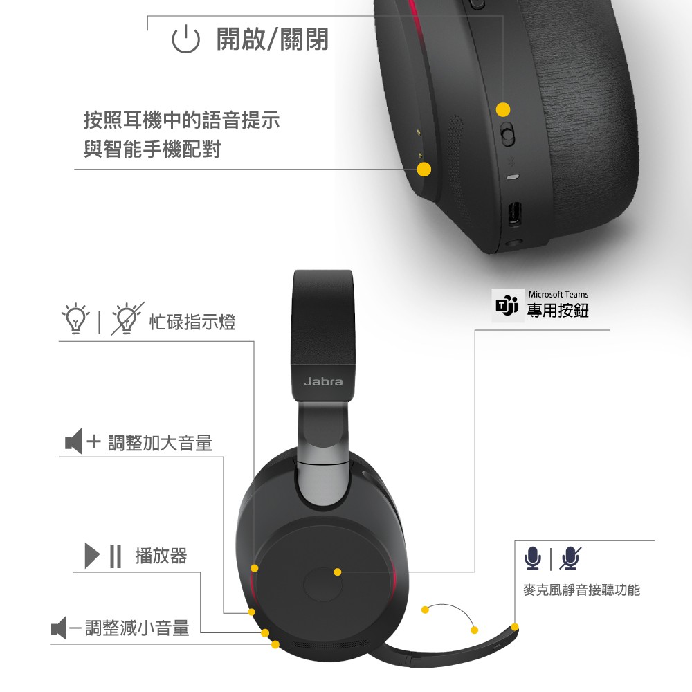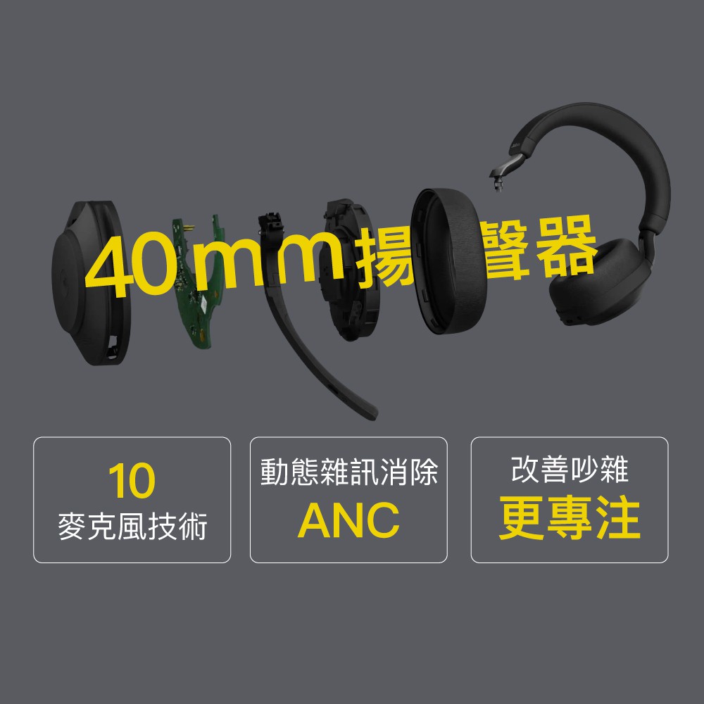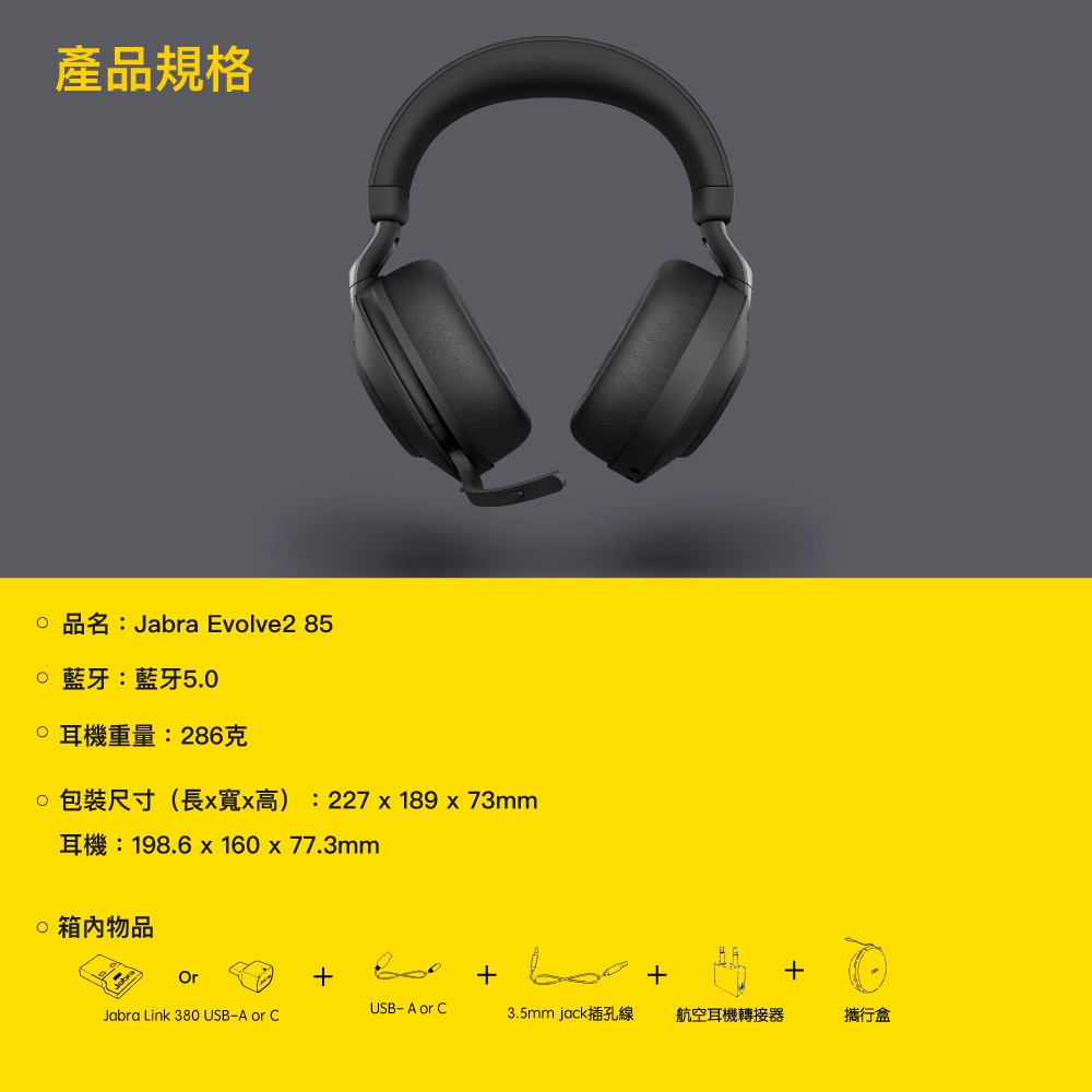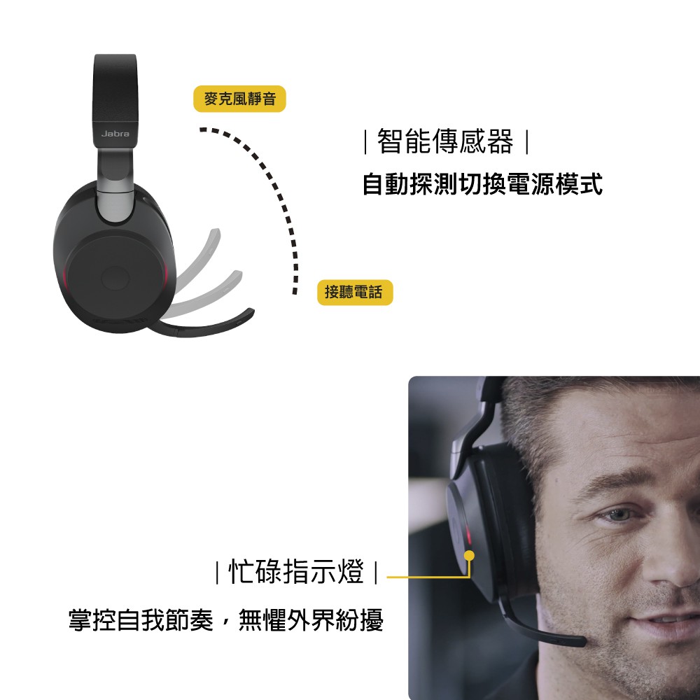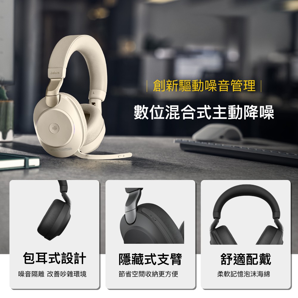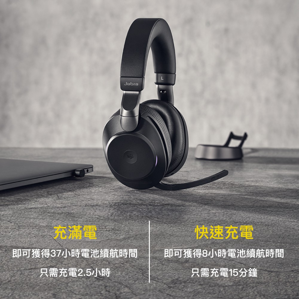 【Jabra】Evolve2 85 MS 商務會議藍牙無線包耳式耳機麥克風(立體聲頭戴式主動降噪商用耳機麥克風)
