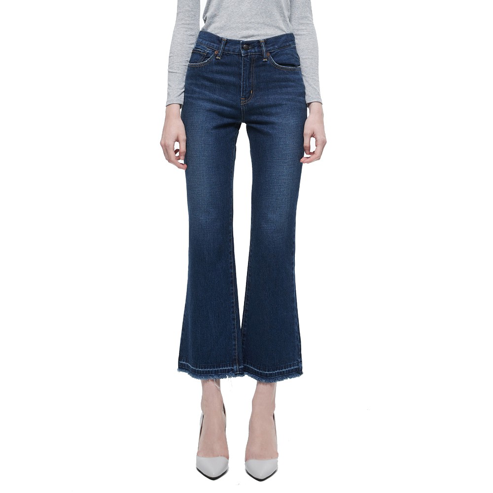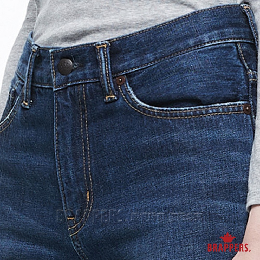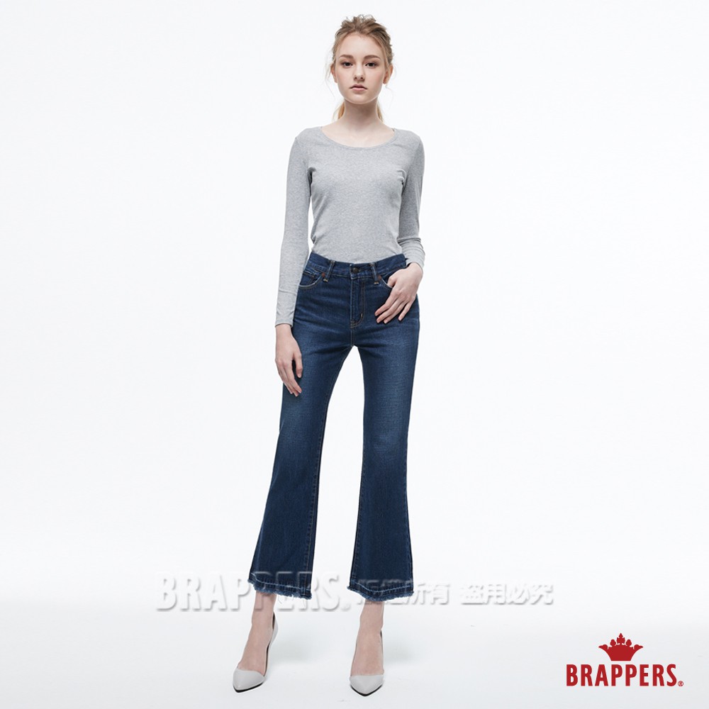BRAPPERS 女款 新美腳系列-中低腰短版不收邊靴型褲-藍