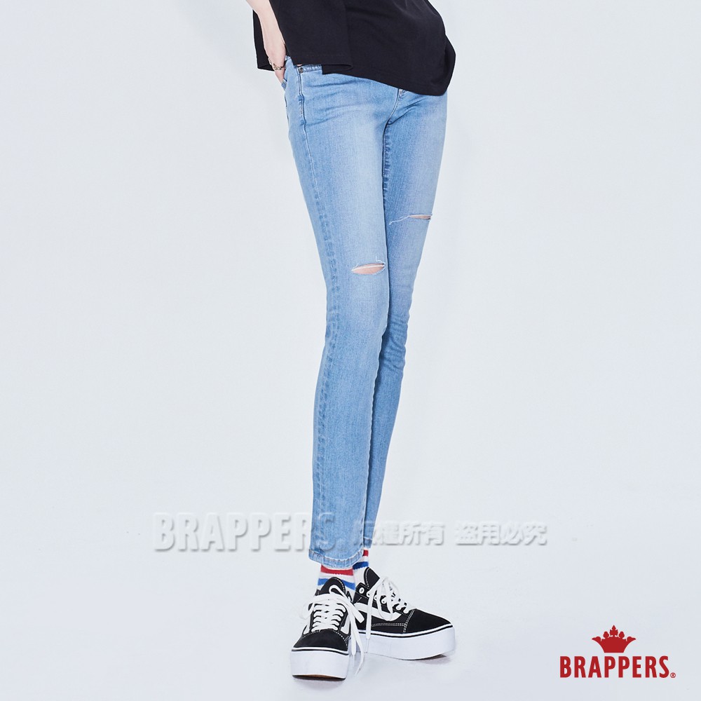 BRAPPERS 女款 新美腳ROYAL系列-低腰彈性割破七分窄管褲-淺藍