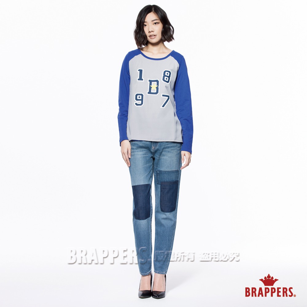 BRAPPERS 女款 Boy Friend Jeans系列-八分反摺褲-淺藍