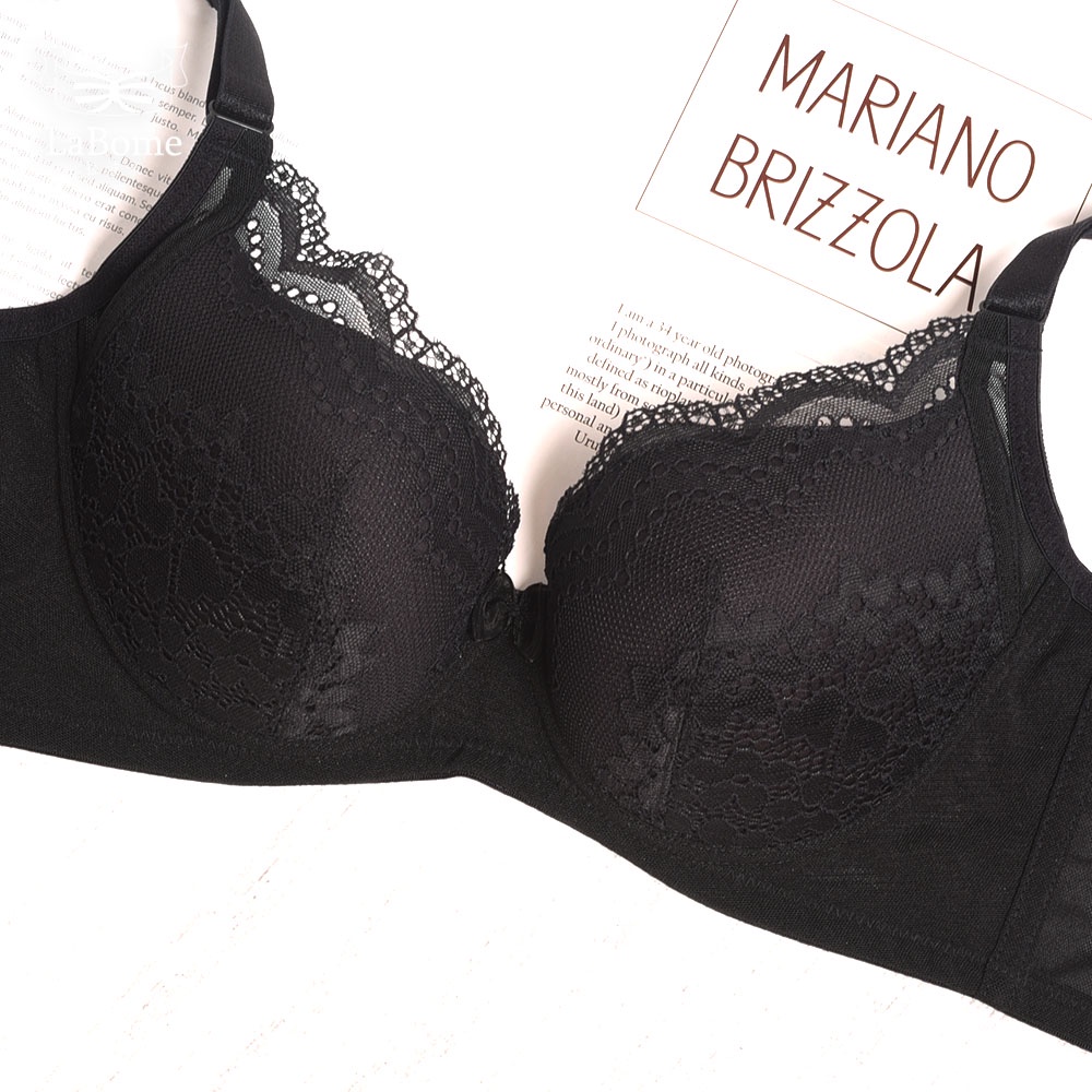 【拉波米】心動艾瑪無鋼圈內衣 甜美蕾絲 透氣輕盈 包覆腋下肉肉 防外擴 無鋼圈 小胸爆乳集中 黑色內衣 A10088