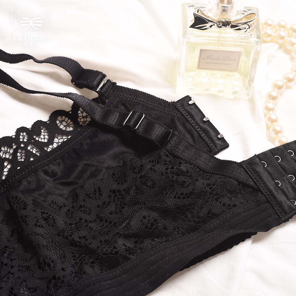 【拉波米】現貨 Q彈中厚罩杯 讓胸型更飽滿 側壓集中深V爆乳 蕾絲精靈 無鋼圈蕾絲內衣 M~XXL 黑色 G10002