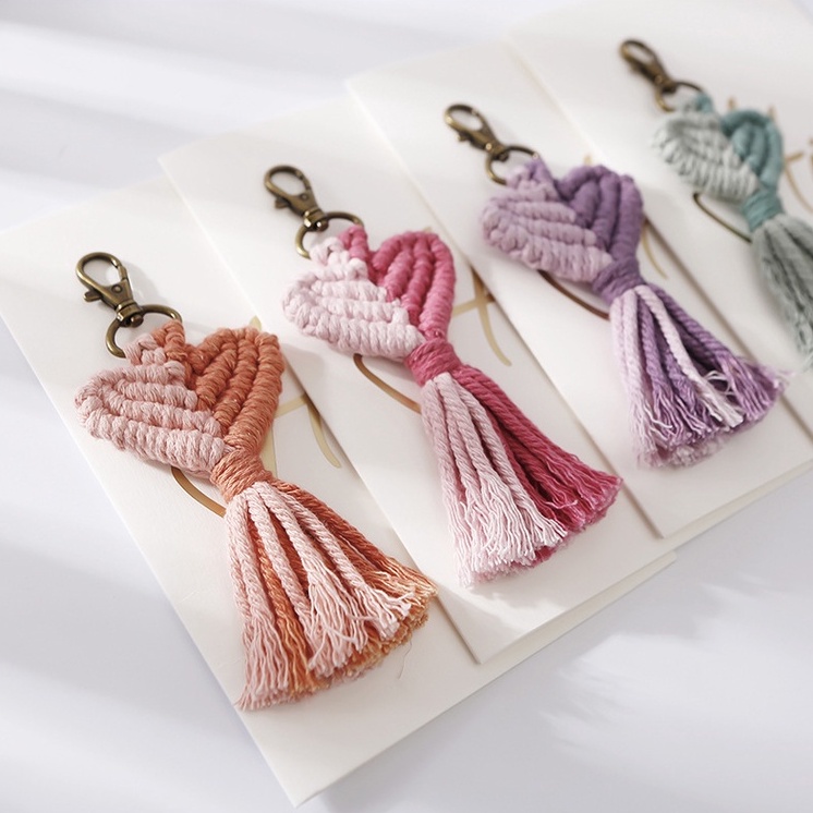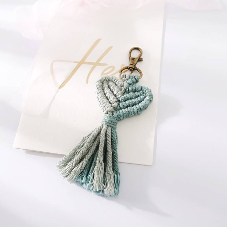 泰國手工吊飾 雙色編織流蘇愛心 波西米亞風 四色可選 搭配包包 質感滿分