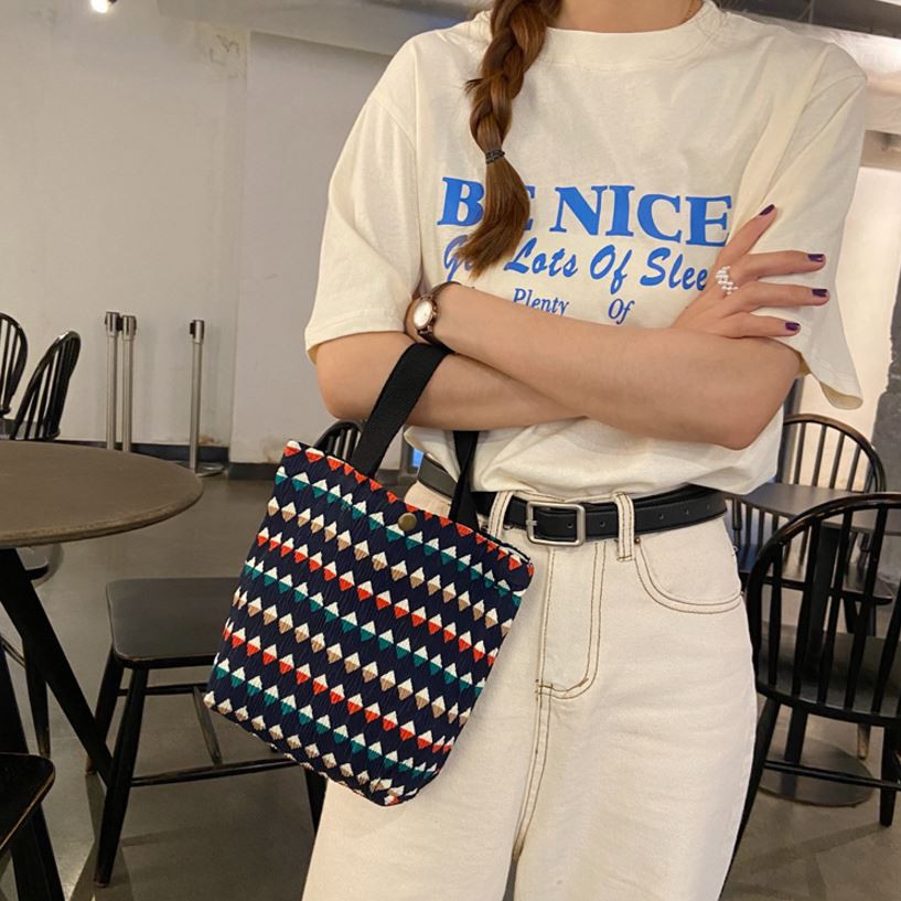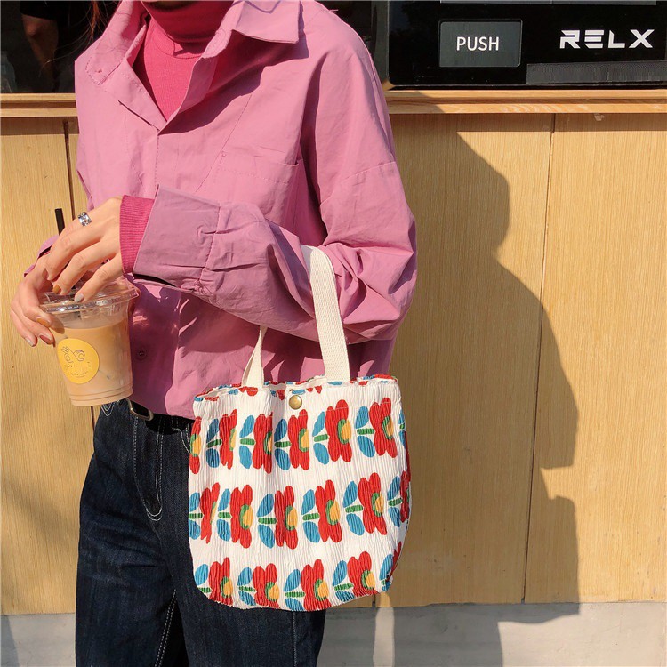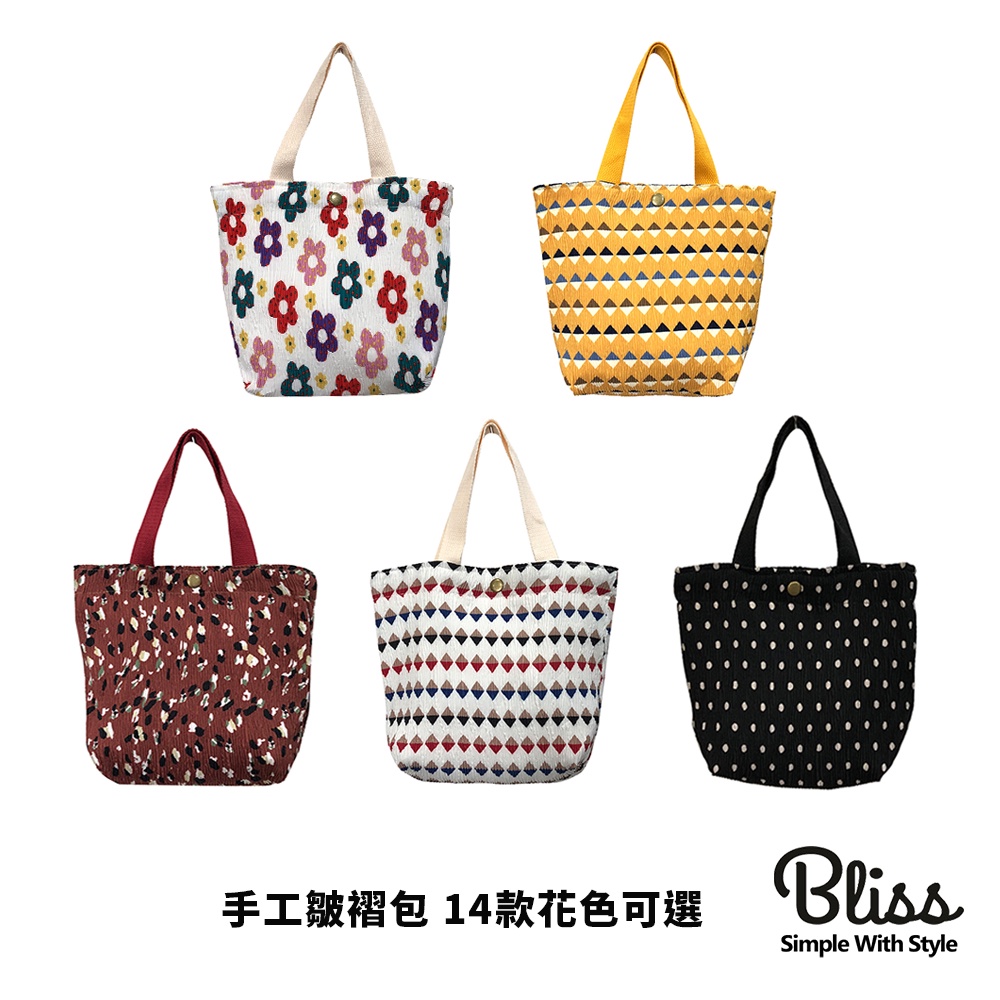 皺褶小布包 清新可愛手提包 手提包 小布包 手提袋 便當袋 餐袋 台灣現貨 開發票