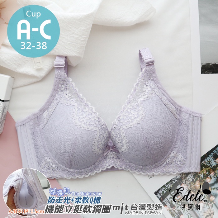 【伊黛爾】舞蝶天使 蝴蝶肌蕾絲集中軟鋼圈內衣 防副乳 提托 透氣 吸濕排汗 調整型內衣 台灣製 B-C杯【6915】