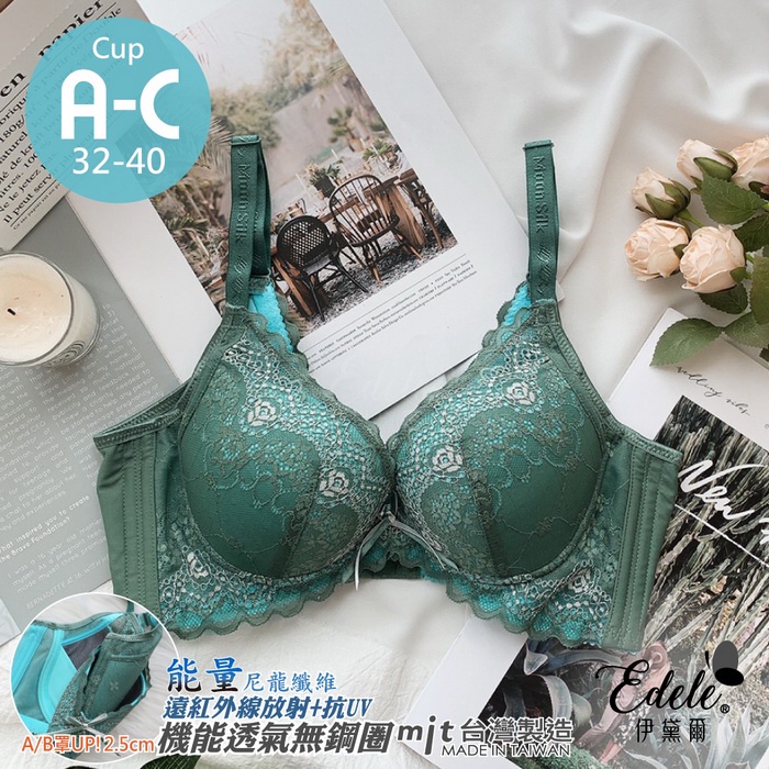 【伊黛爾】藍鬱香榭單內衣 無鋼圈內衣 小胸救星 防副乳 集中 包覆 台灣製 480丹雙層六角塑身網布 NO 27836