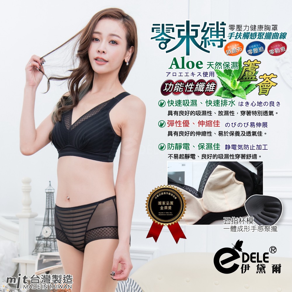 【伊黛爾】極致深V內衣 透氧 舒適 防副乳 蘆薈纖維 集中 包覆 無鋼圈 台灣製。A-D罩 NO 8002