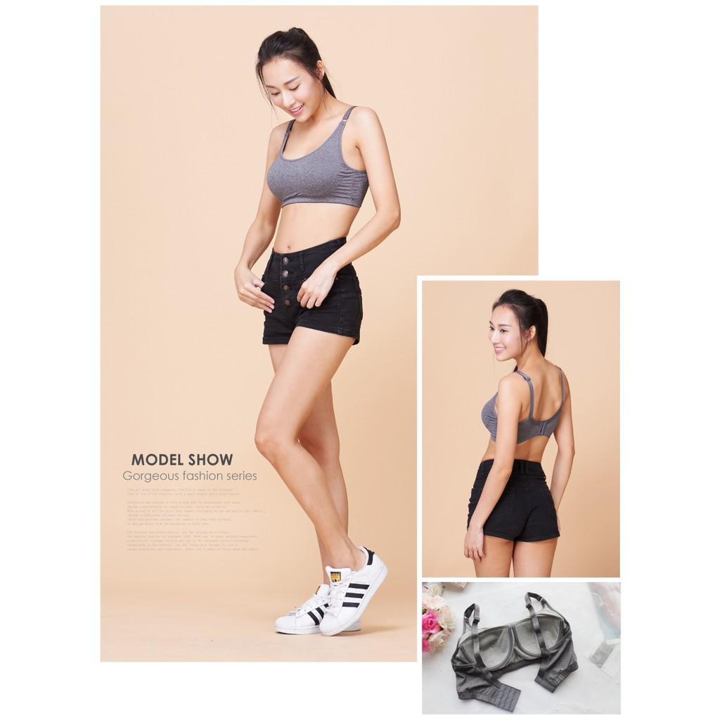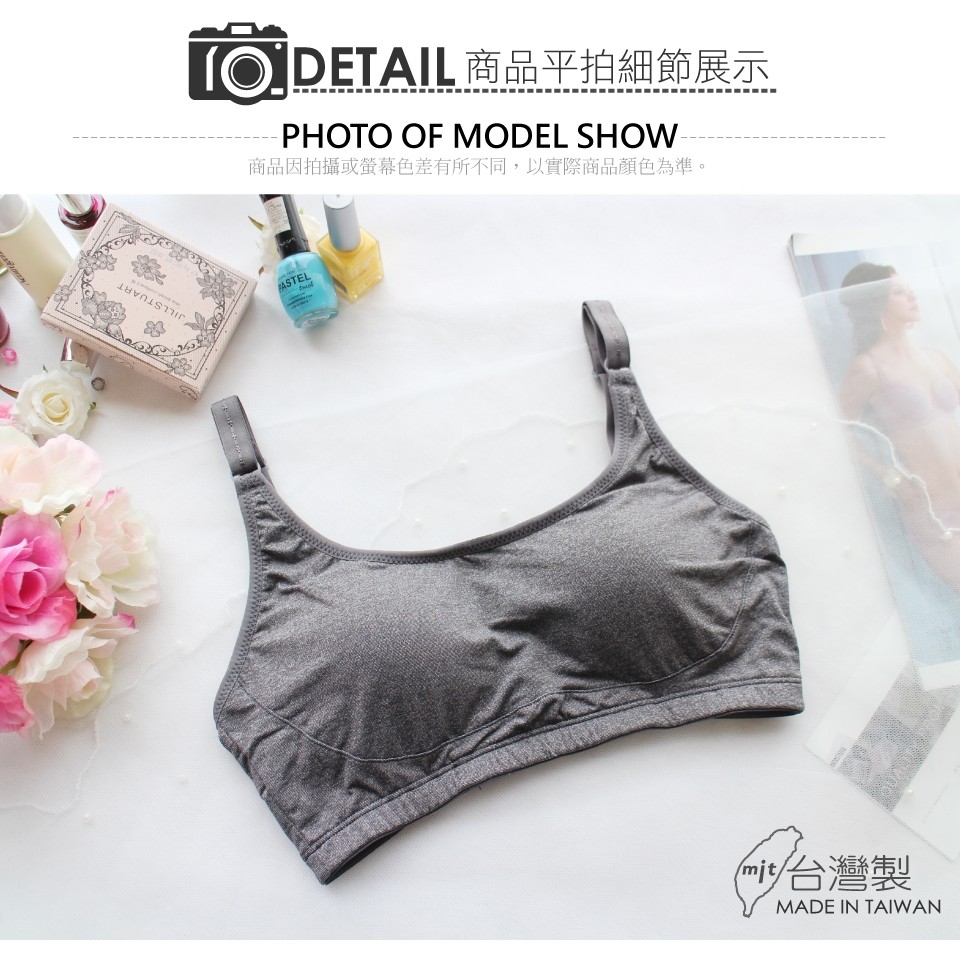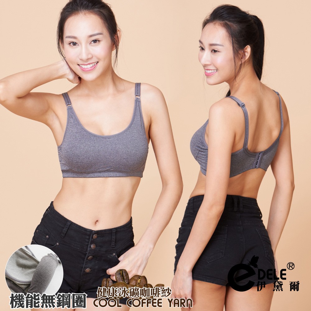 【伊黛爾】冰礦咖啡紗運動休閒無鋼圈美胸衣-涼感-無鋼圈-包覆-舒壓-冰礦灰 NO1615