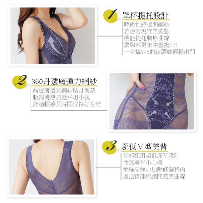 【伊黛爾】360丹罩杯塑身衣 網紗塑身衣 無痕罩杯 輕塑 塑腹 大尺碼 燃脂收腹束腰瘦身衣 NO 6782