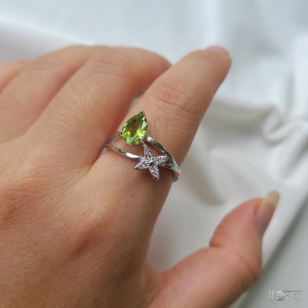 【非銀不可】天然橄欖石小花戒指