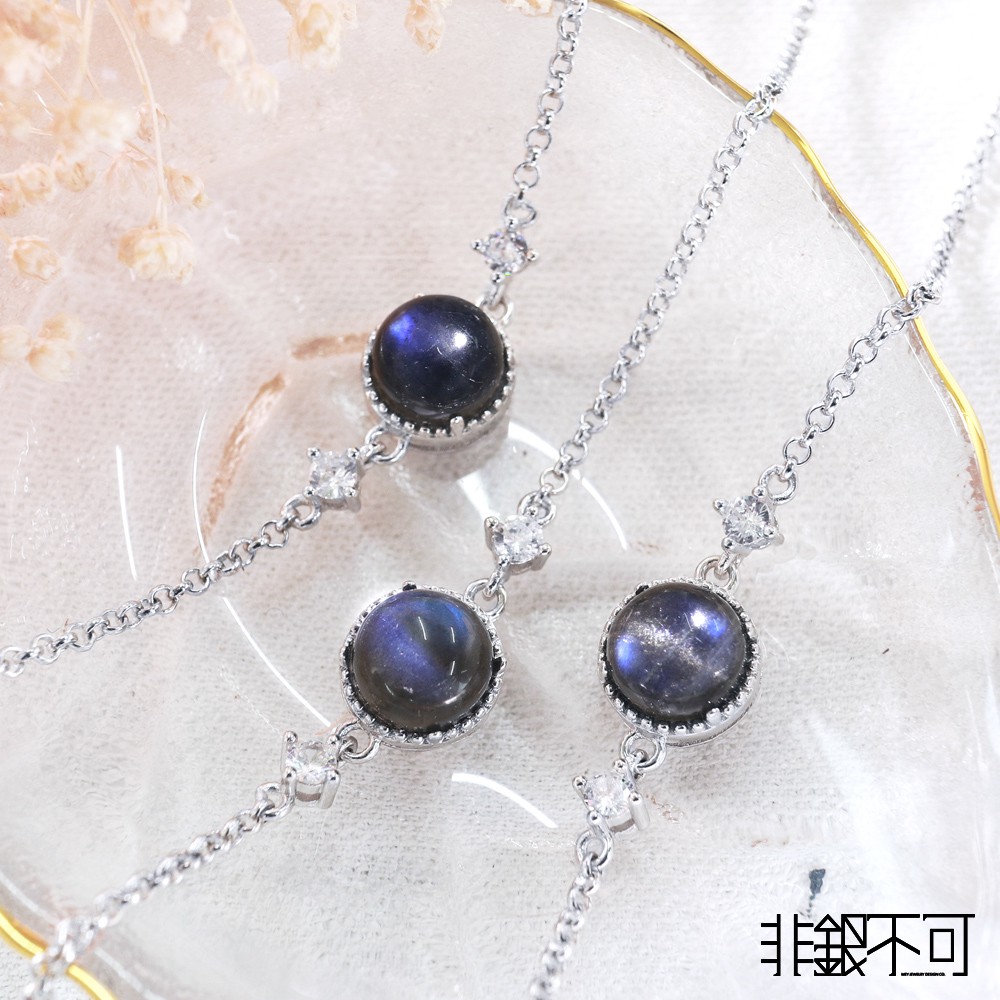 【非銀不可】天然 黑底拉長石 鋯石 純銀手鍊