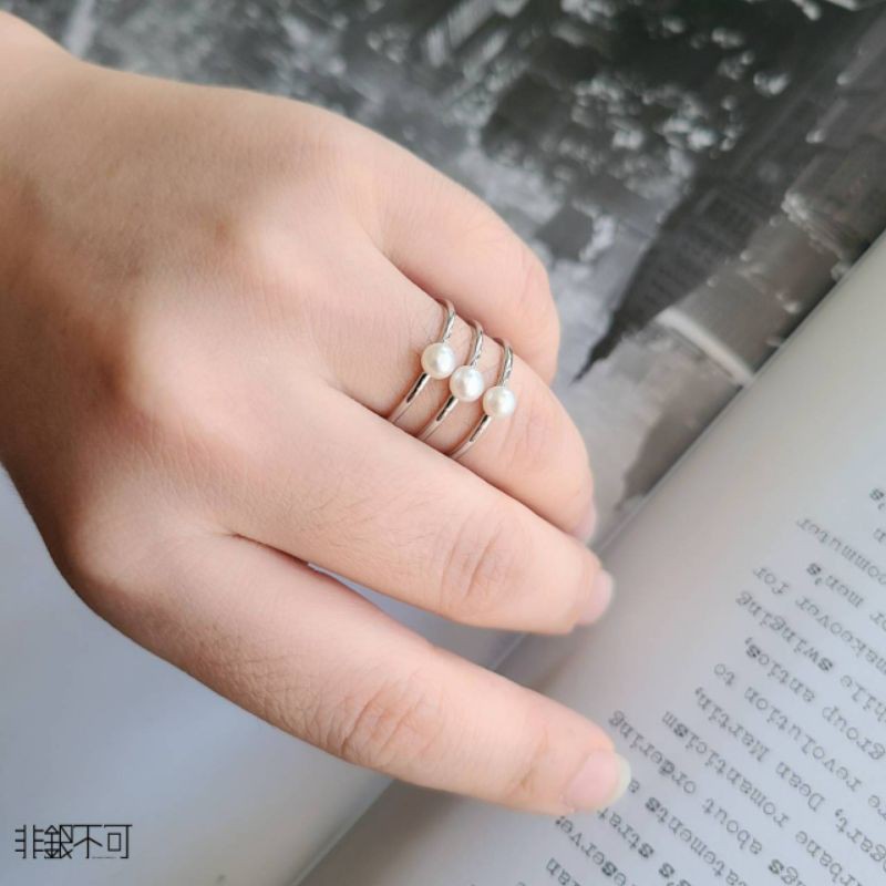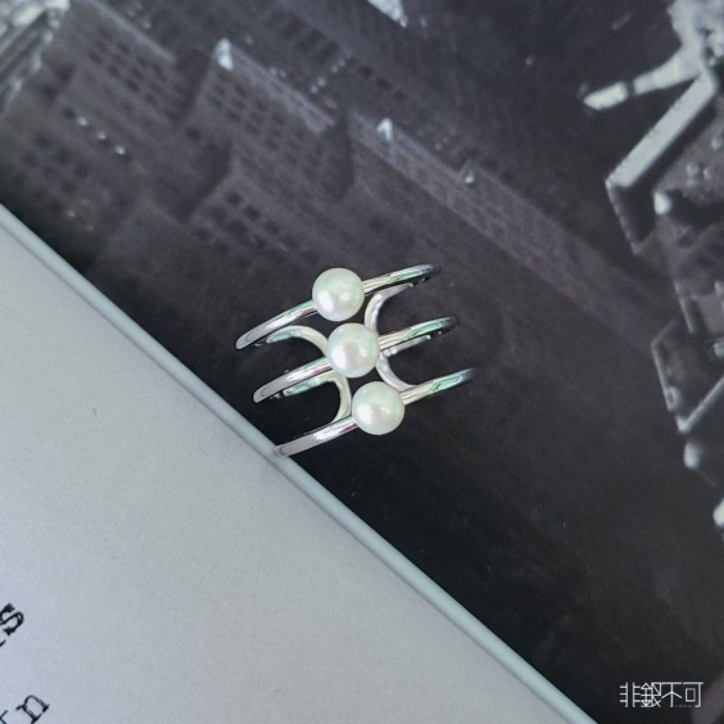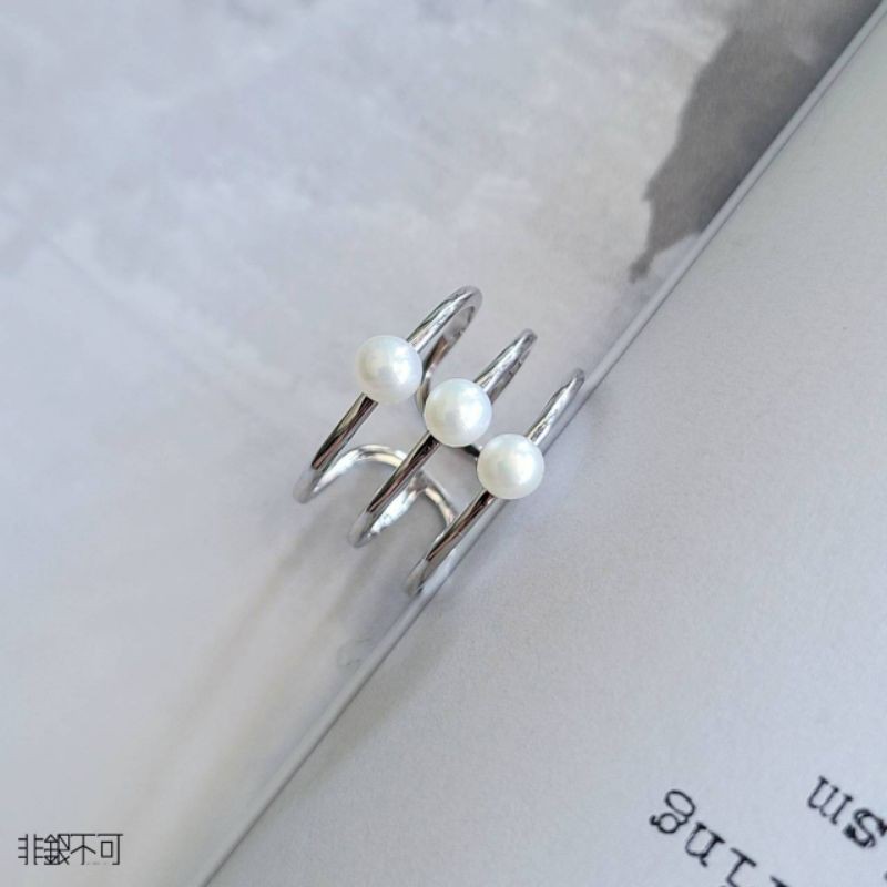 【非銀不可】純銀三顆珍珠多環戒