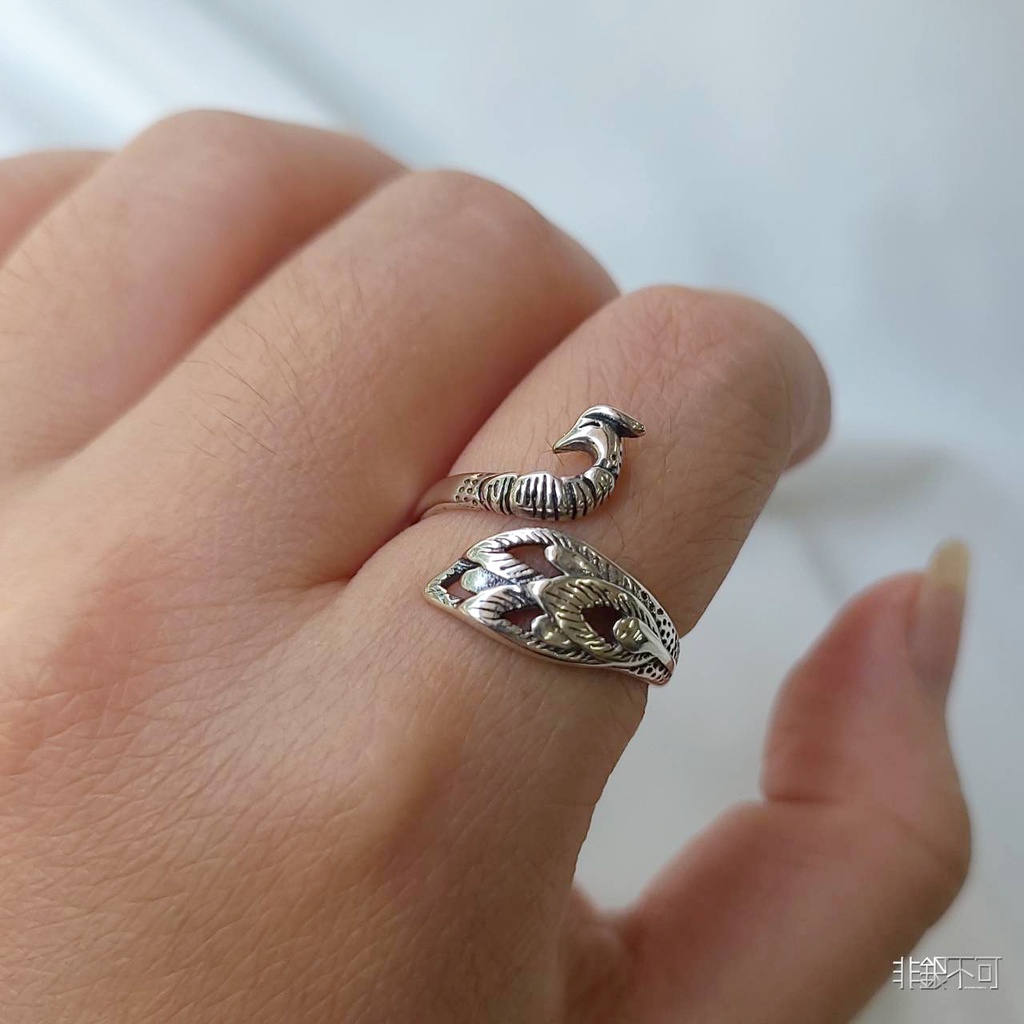 【非銀不可】孔雀造型* 925純銀戒指(可調節戒圍)