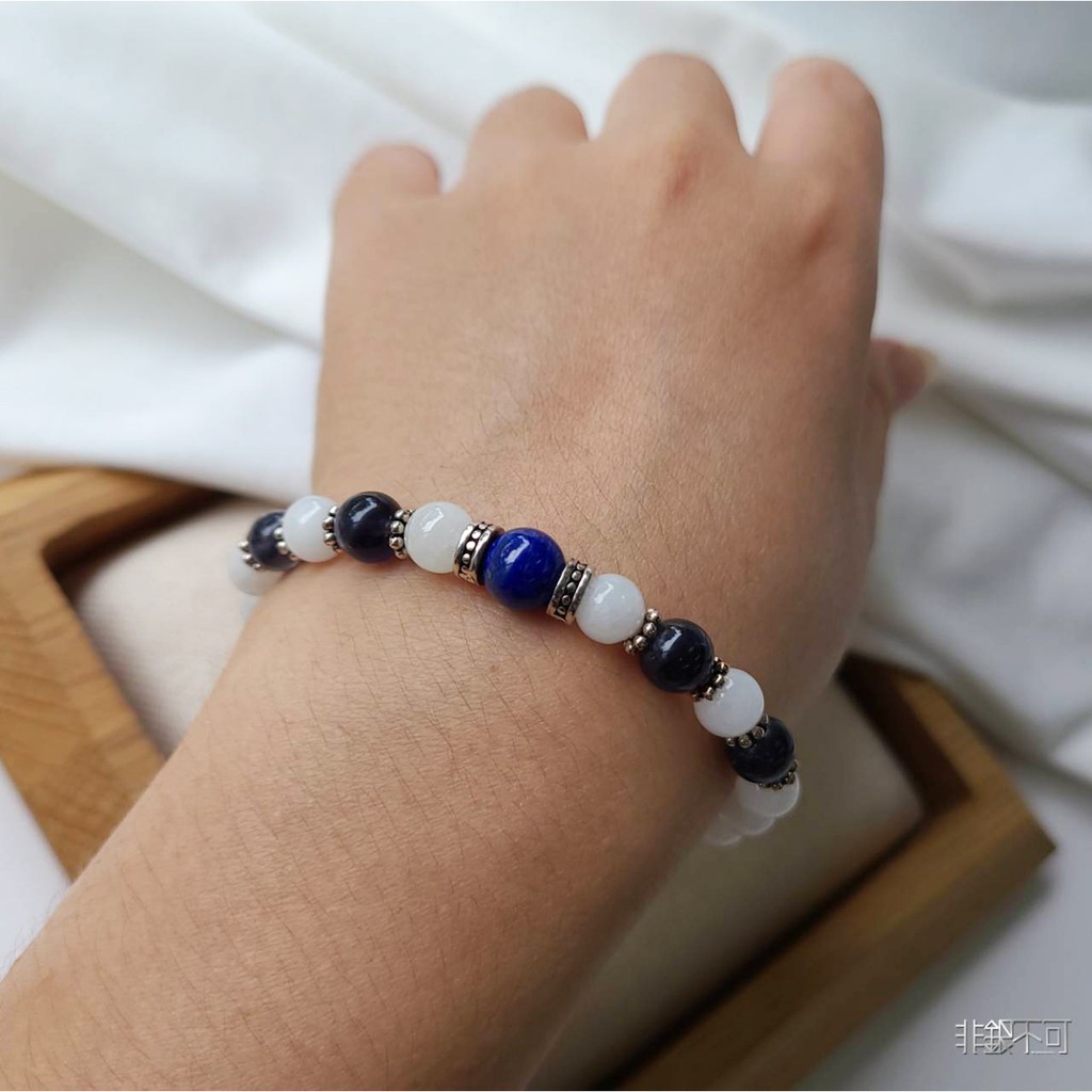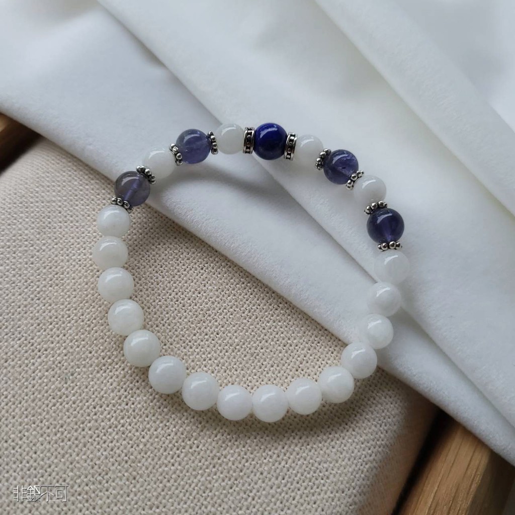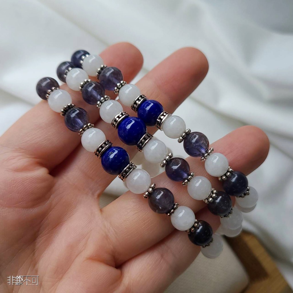 【非銀不可】頂級和田白玉 堇青石 青金石 純銀手串 獨家設計