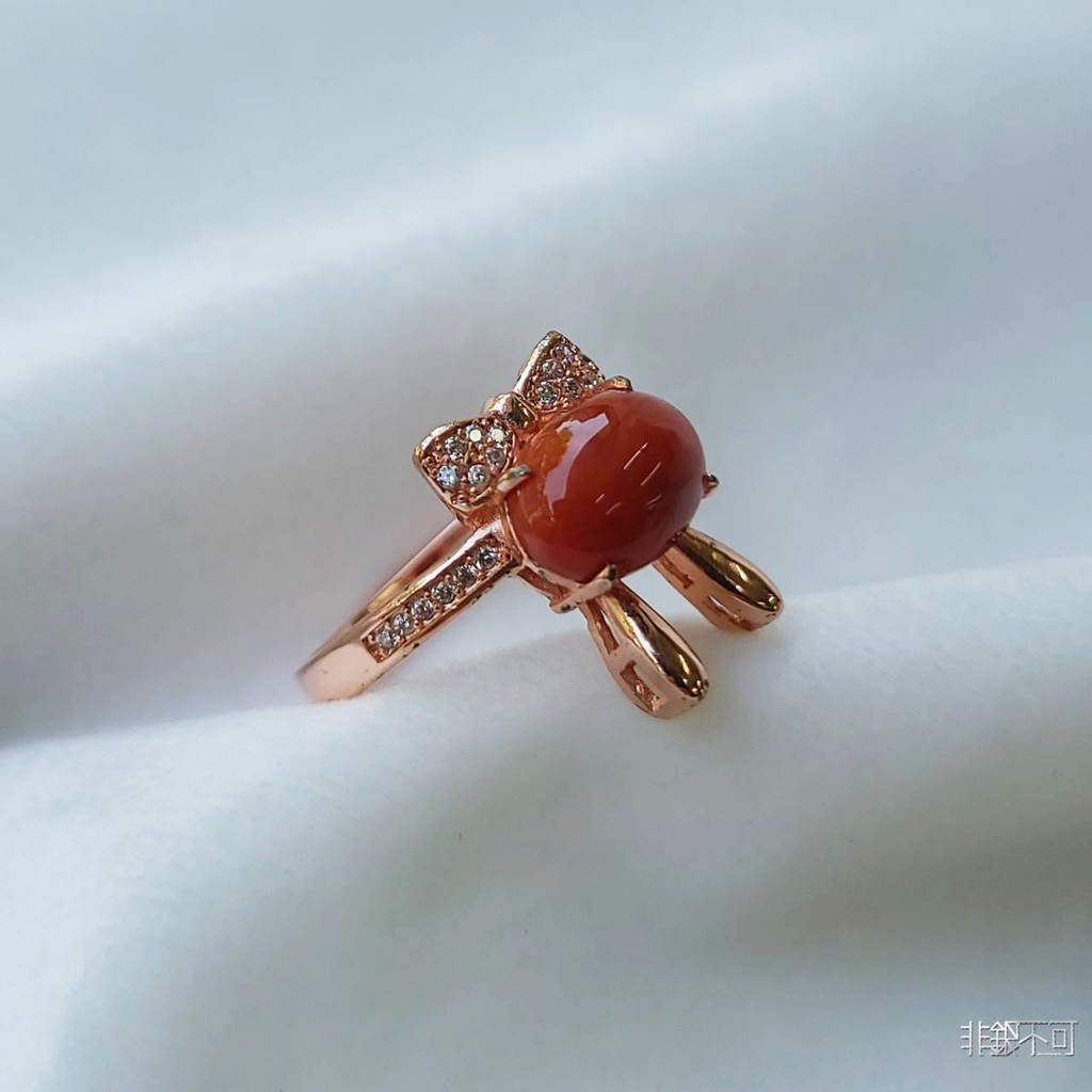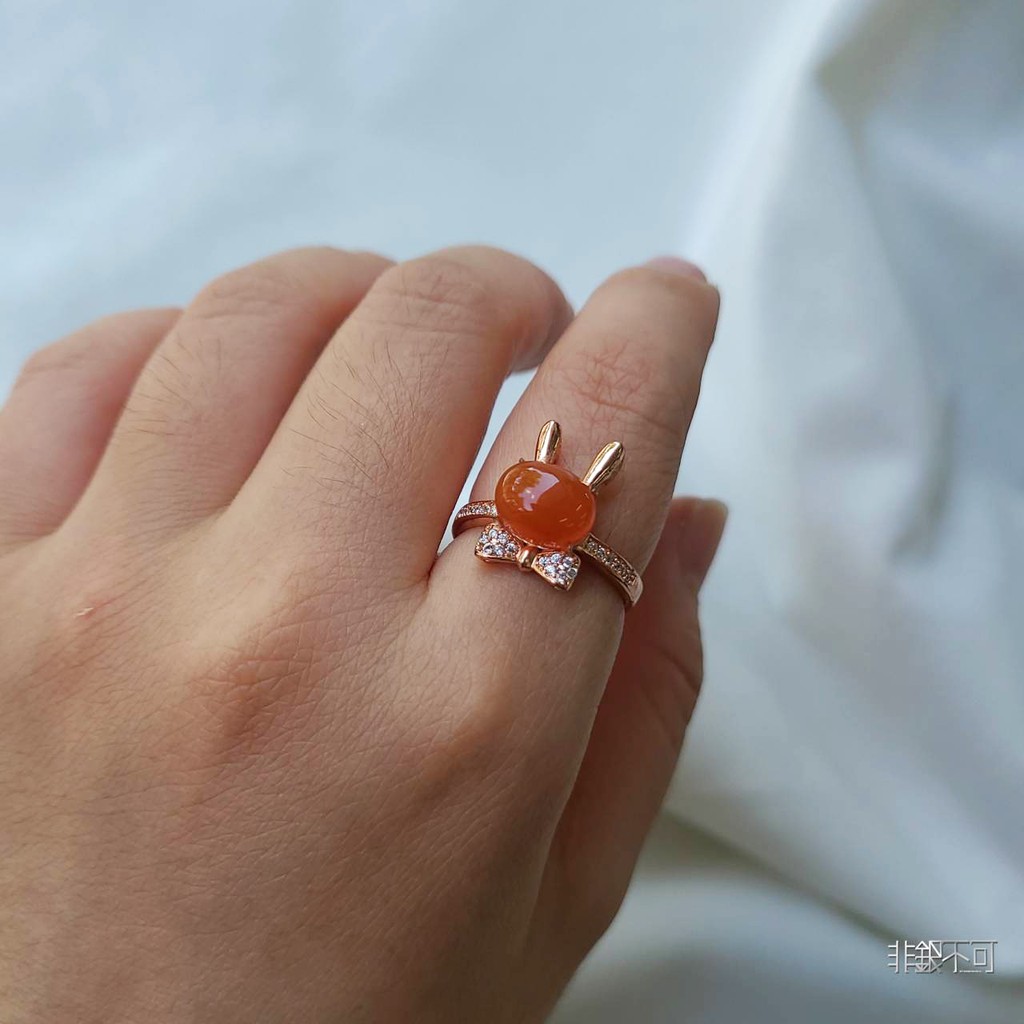 【非銀不可】天然南紅 兔兔純銀戒指