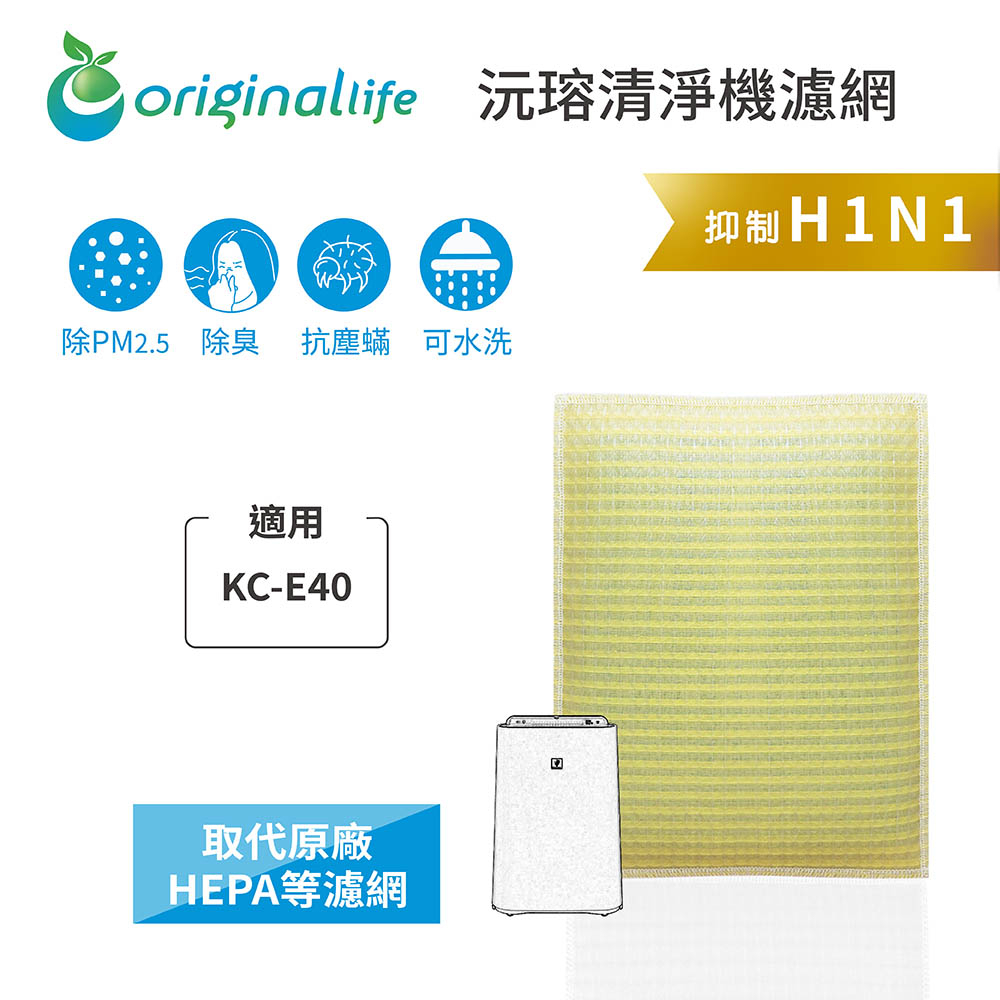 Original Life沅瑢 適用SHARP:KC-E40 長效可水洗 空氣清淨機濾網
