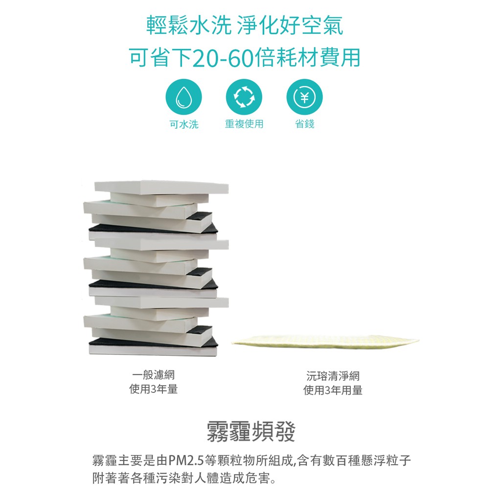 Original Life 沅瑢 適用TECO東元:NN2402BD長效可水洗 空氣清淨機濾網 組合包