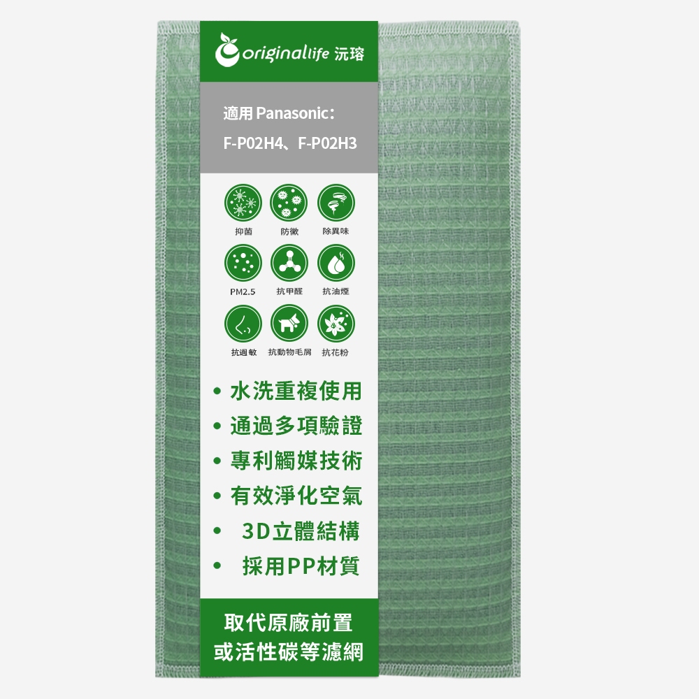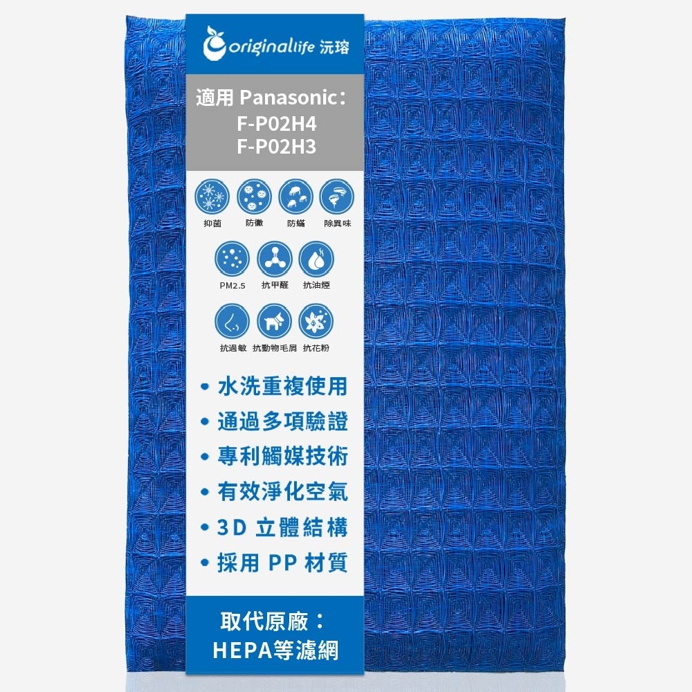 Original Life沅瑢 適用Panasonic:F-P02H4、F-P02H3 長效可水洗 空氣清淨機濾網