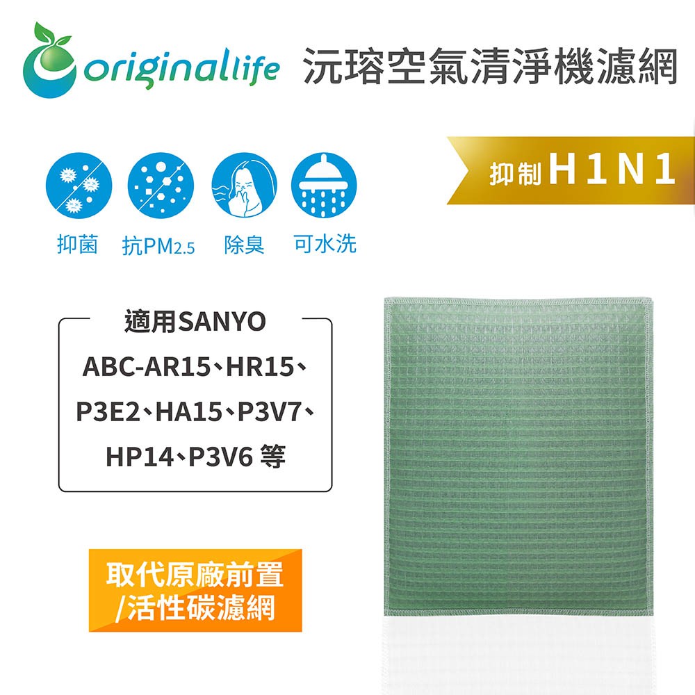 Original Life沅瑢 適用SANYO: ABC-AR15、HR15、P3E2 長效可水洗 空氣清淨機濾網