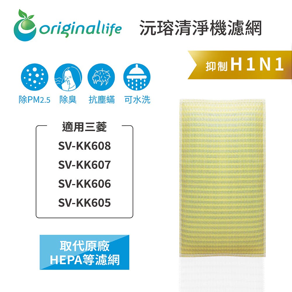 Original Life沅瑢 適用三菱:SV-KK608、SV-KK607、SV-KK606 可水洗 空氣清淨機濾網