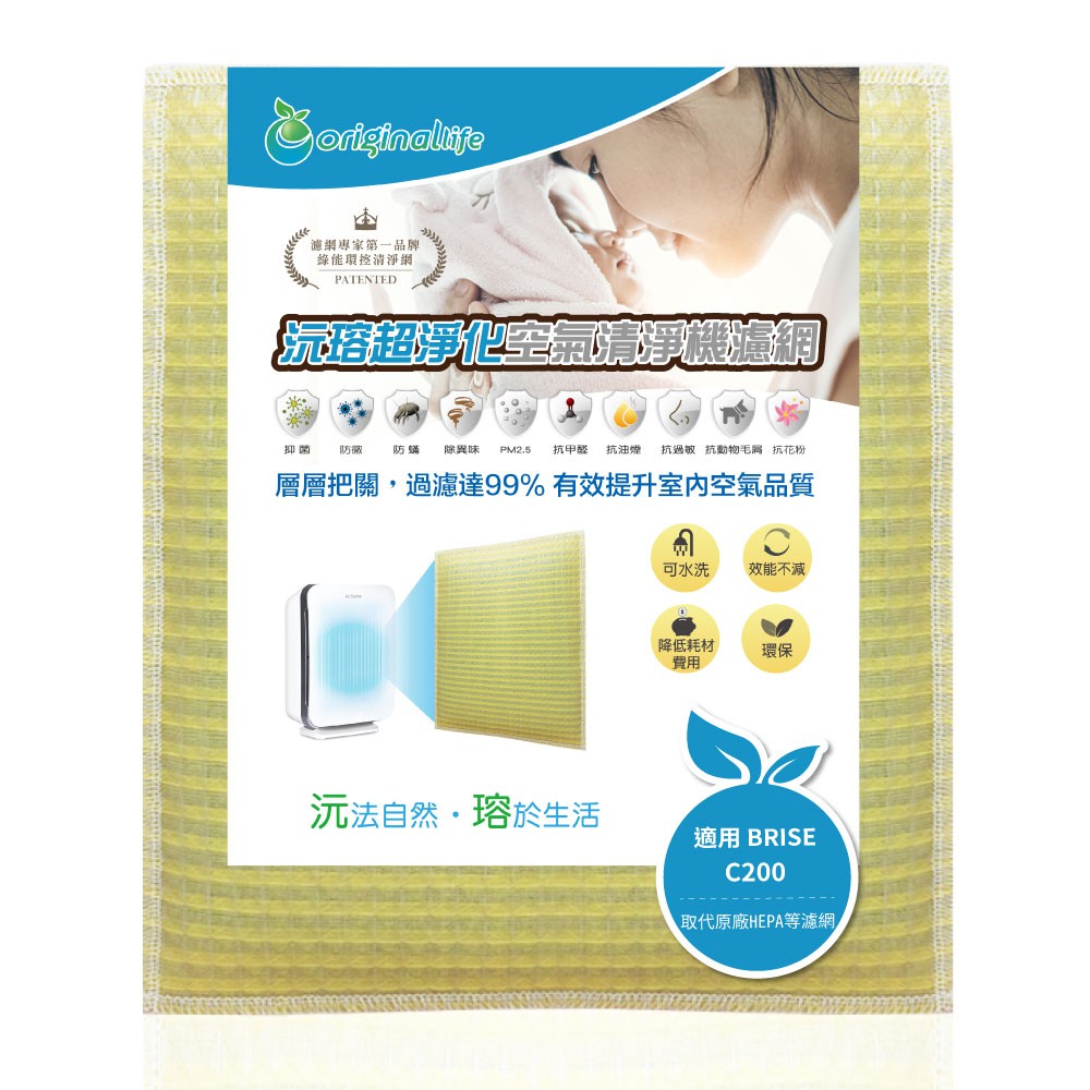Original Life沅瑢 適用 艾特維BRISE:C200 長效可水洗 空氣清淨機濾網