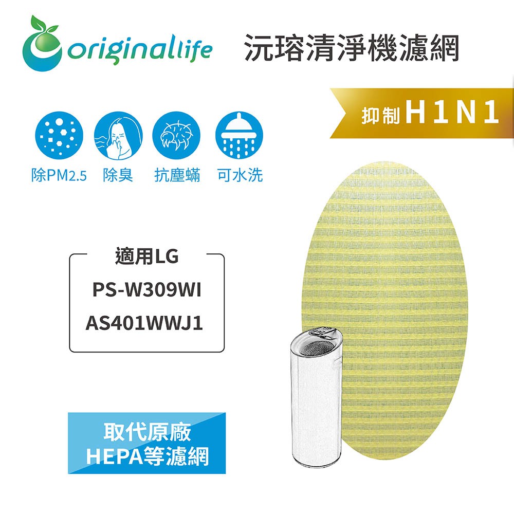 Original Life沅瑢 適用LG PS-W309WI AS401WWJ1 長效可水洗 空氣清淨機濾網