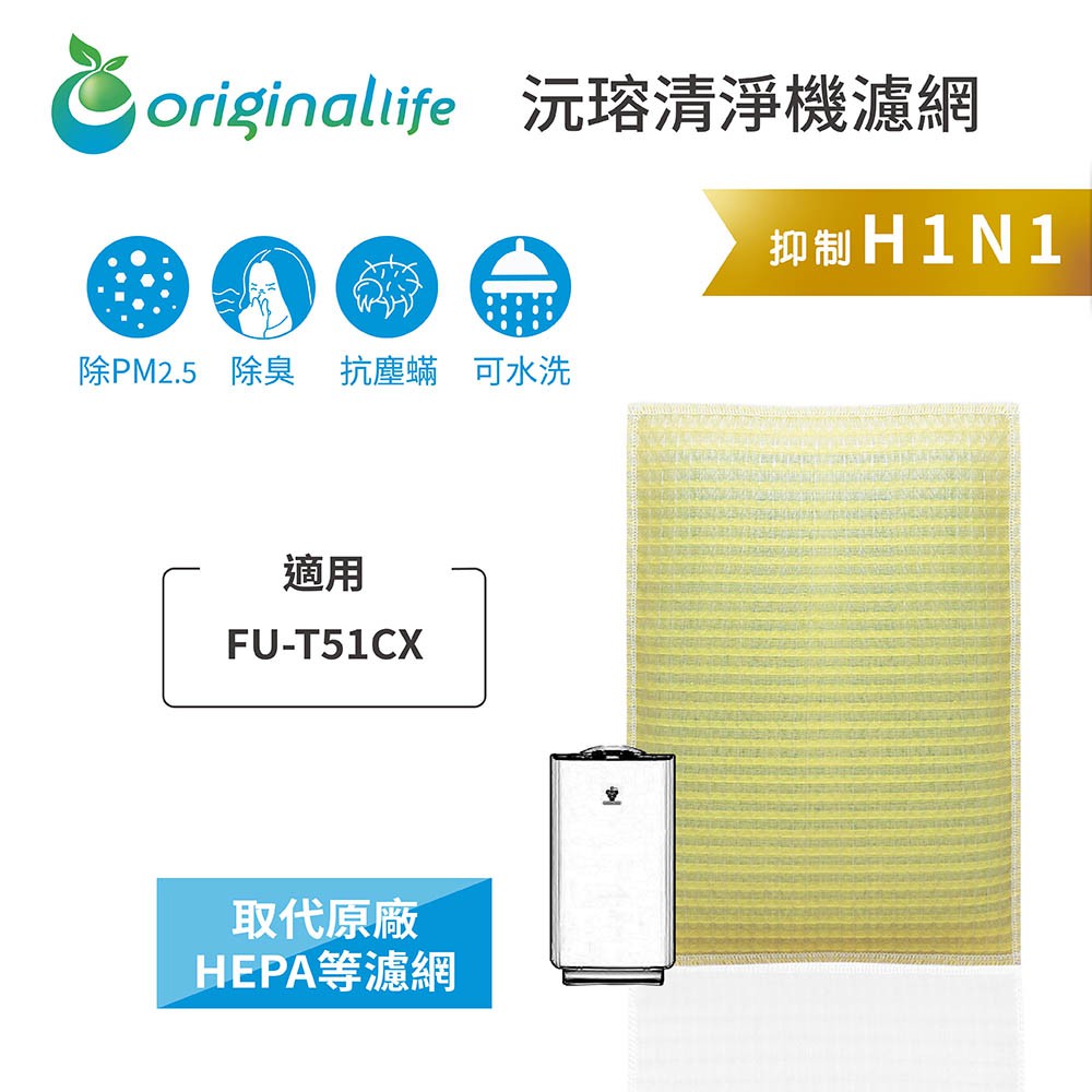 Original Life沅瑢 適用SHARP:FU-T51CX 長效可水洗 空氣清淨機濾網