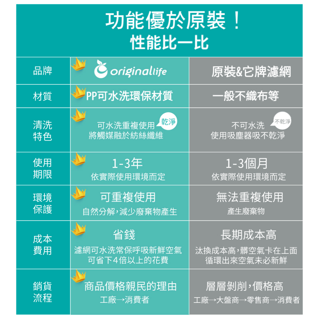 Original Life沅瑢 適用SHARP FU-W50A-W 長效可水洗 空氣清淨機濾網