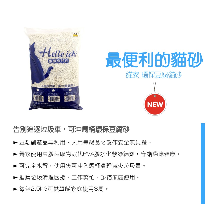 Hello ICHI 條狀凝結豆腐砂 2.5KG國際貓家