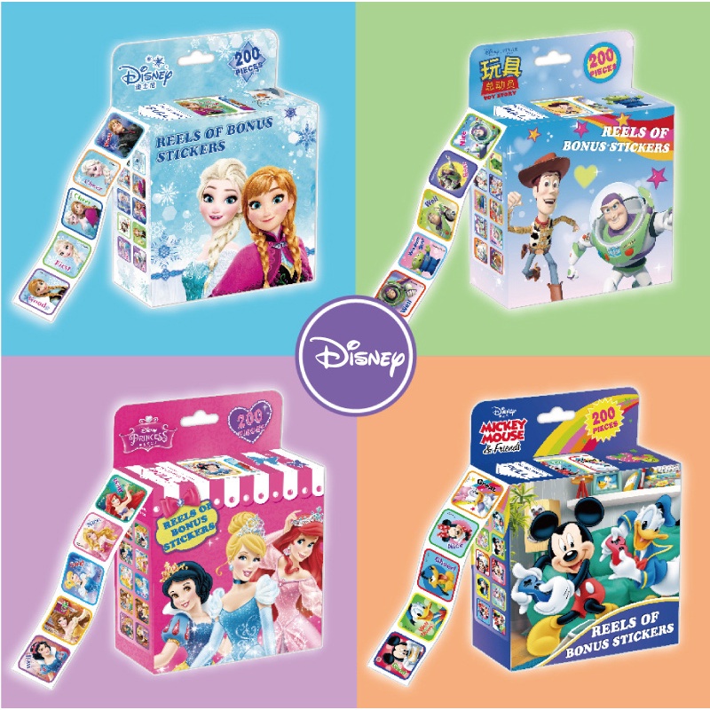 台灣現貨|正版迪士尼 Disney| 捲捲貼紙 (200貼) 貼紙 手帳貼紙 冰雪奇緣 小熊維尼 咕卡貼 米老鼠