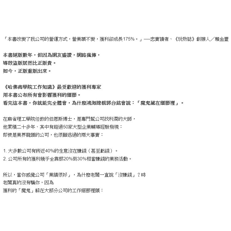 繁體 獲利的魔鬼,就躲在細節裡:不拚業績,我們如何讓獲利翻倍? 全新